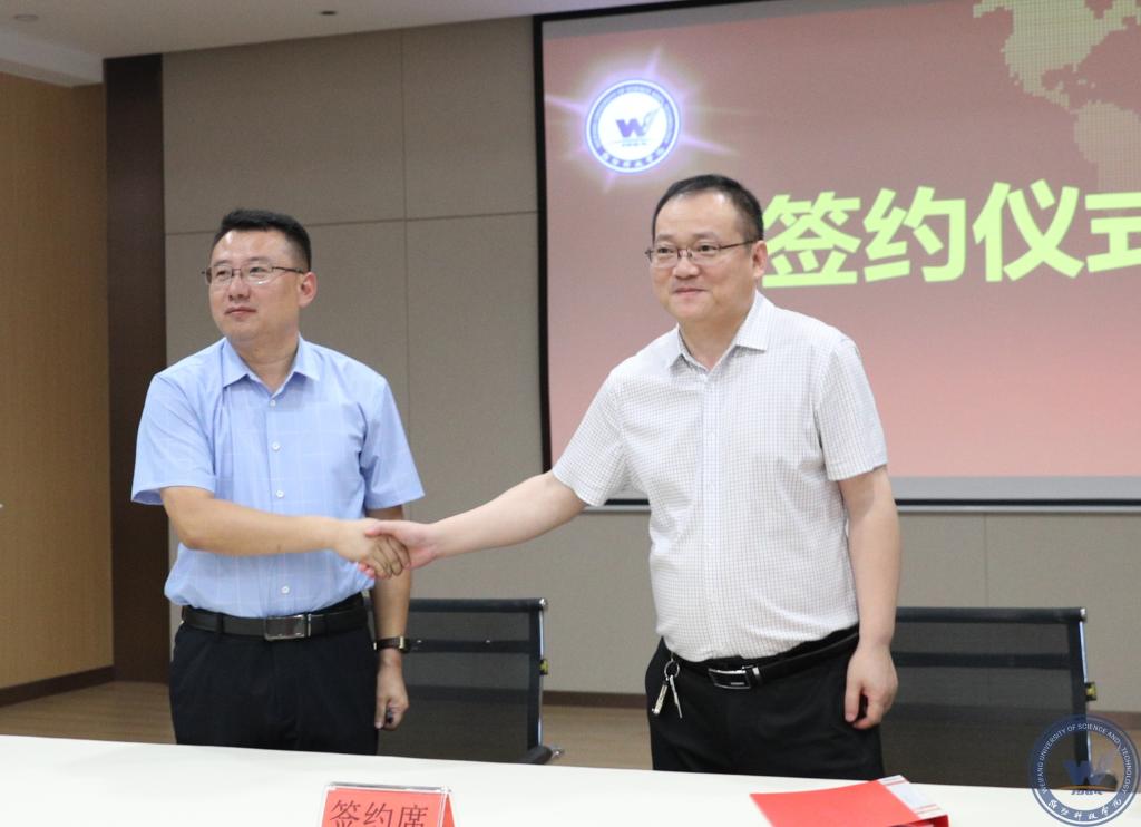 7月3日下午,我校联合侯镇党委、镇政府,在农圣文化学术交流中心举办“校地共生、协同创新”校企对接座谈会,学校与侯镇海洋化工园签订战略合作协议,山东宏源酒业有限公司、东方宏业化工有限公司、鲁源化工科技有限公司、新华制药(寿光)有限公司、山东博苑医药化学有限公司等18家来自侯镇海洋化工园骨干企业的负责人,与我校化工方向博士进行了人才、技术和项目方面的交流、对接,张英超博士与山东鲁源化工科技有限公司、岳向国博士与山东博苑医药化学有限公司现场签订项目合作协议。