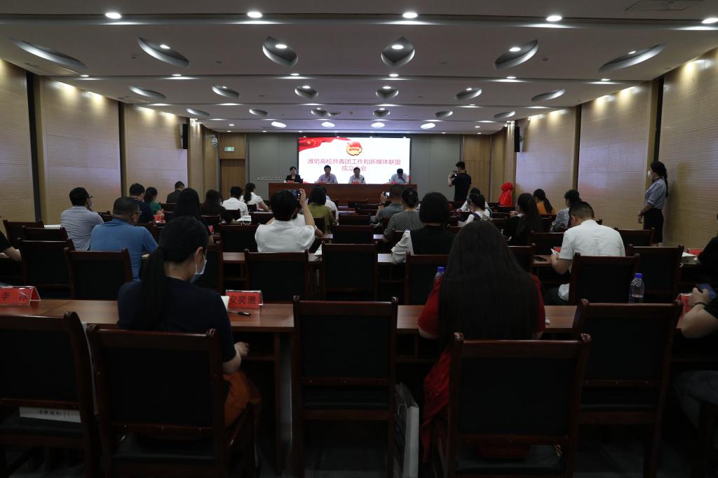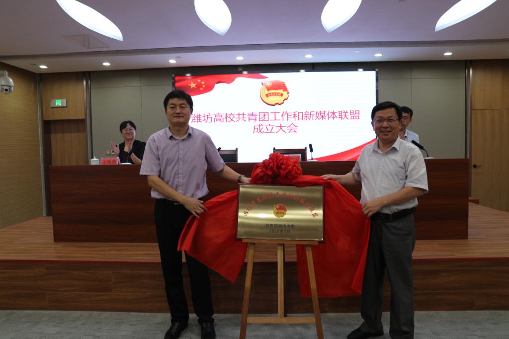 为进一步推进共青团改革,提升新时期高校共青团工作,整合高校资源,加强思想引导能力、更好地引导青年、服务青年,团结广大青年投身生态、开放、活力、精致的现代化高品质城市建设,7月15日上午,潍坊团市委在我校举行潍坊市高校共青团工作和新媒体联盟成立大会。潍坊团市委副书记赵中国,潍坊日报社副总编张学启,潍坊团市委学少部部长、四级调研员王海燕,潍坊团市委宣传部部长周密,驻潍坊省属高校团委负责人、宣传工作负责人,团市委学少部、宣传部相关人员50余人出席。寿光市委副书记李永光,寿光市委常委、宣传部部长孙磊,宣传部副部长杨福亮,寿光团市委书记金圣凯,寿光市人大常委会副主任、我校校长李昌武,党委书记李凤祥,校领导杨专志陪同。