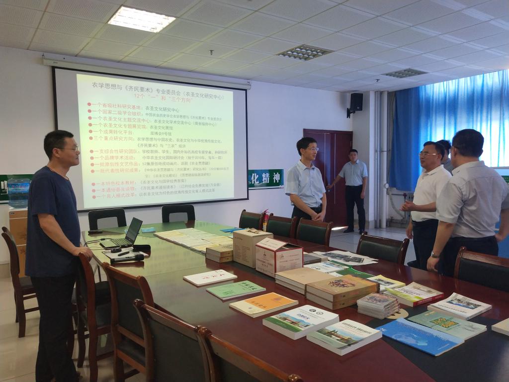 李永光一直非常关注和重视农圣文化研究工作,在调研中指出:寿光是“仓圣、盐圣、农圣”故里,特别是“农圣”贾思勰,他的历史事迹更加真实,历史贡献、历史地位更加突出。寿光乃至潍坊市委、政府一直高度重视贾思勰与农圣文化研究工作,这是寿光乃至潍坊市文化建设中非常重要的环节与组成部分。李兴军对当前农圣文化研究工作取得的成果、农学思想与《齐民要术》研究会及农圣文化研究中心建设情况,以及学院将进行农圣文化展馆建设的规划作了详细汇报。李永光对农圣文化展馆的建设规划表示高度肯定,认为“非常重要,也非常有必要”。并特别强调:一定要发挥好“中国农业历史学会农学思想与齐民要术研究会”、农圣文化研究中心在全国农圣文化学术领域的引领作用,为弘扬以“农圣文化”为代表的中国优秀传统文化作出积极贡献。