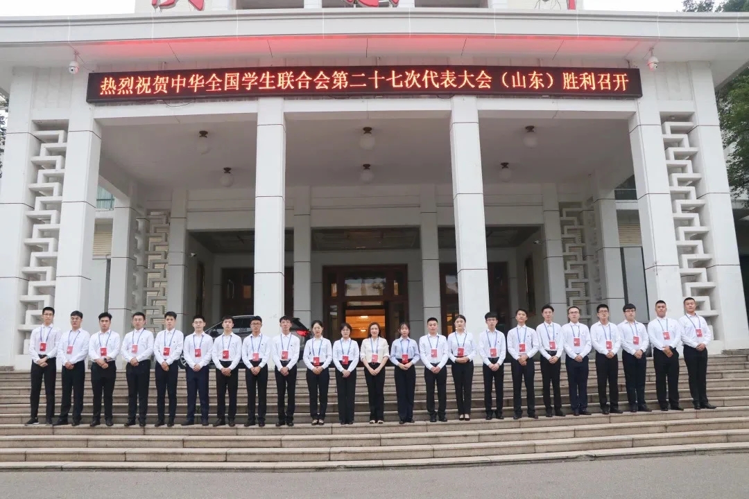 8月17日--18日,中华全国青年联合会第十三届委员会全体会议、中华全国学生联合会第二十七次代表大会在北京隆重召开。中共中央总书记、国家主席、中央军委主席习近平发来贺信,代表党中央向大会的召开表示热烈的祝贺。中共中央政治局常委、中央书记处书记王沪宁出席开幕会,中共中央政治局委员、国务院副总理孙春兰代表党中央致词,共青团中央书记处第一书记贺军科在大会上致词。我校工商管理学院2017级人力资源管理2班张满意同学作为正式代表参加大会。大会共选举产生高等学校学生会团体委员单位101个,山东省5所高校学生会入选,全国工作委员会团体单位80个,山东省3所高校学生会入选。我校学生会以446票高票当选中华全国学联第二十七届委员会团体委员单位,并入选成为中华全国学联第二十七届委员会工作委员会团体。