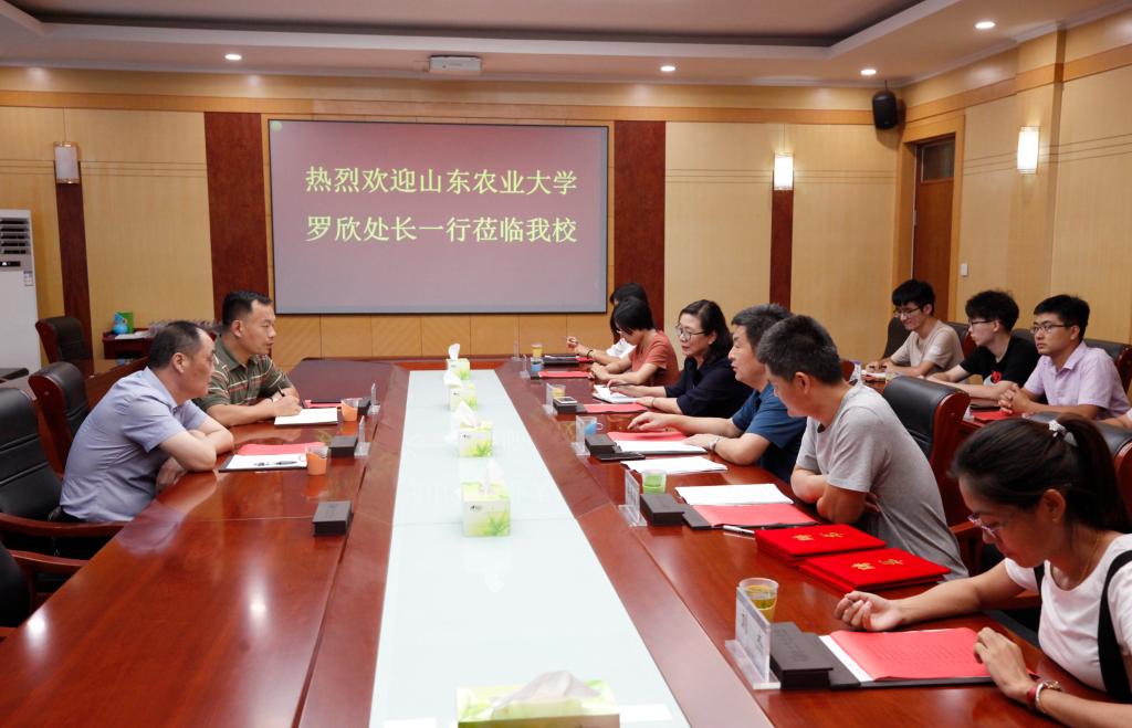 8月25日下午,山东农业大学研究生处处长罗欣一行到我校调研研究生联合培养情况。我校副校长李广伟,研究生中心主任李春雷,山农硕导潘好芹、刘杰等老师陪同。