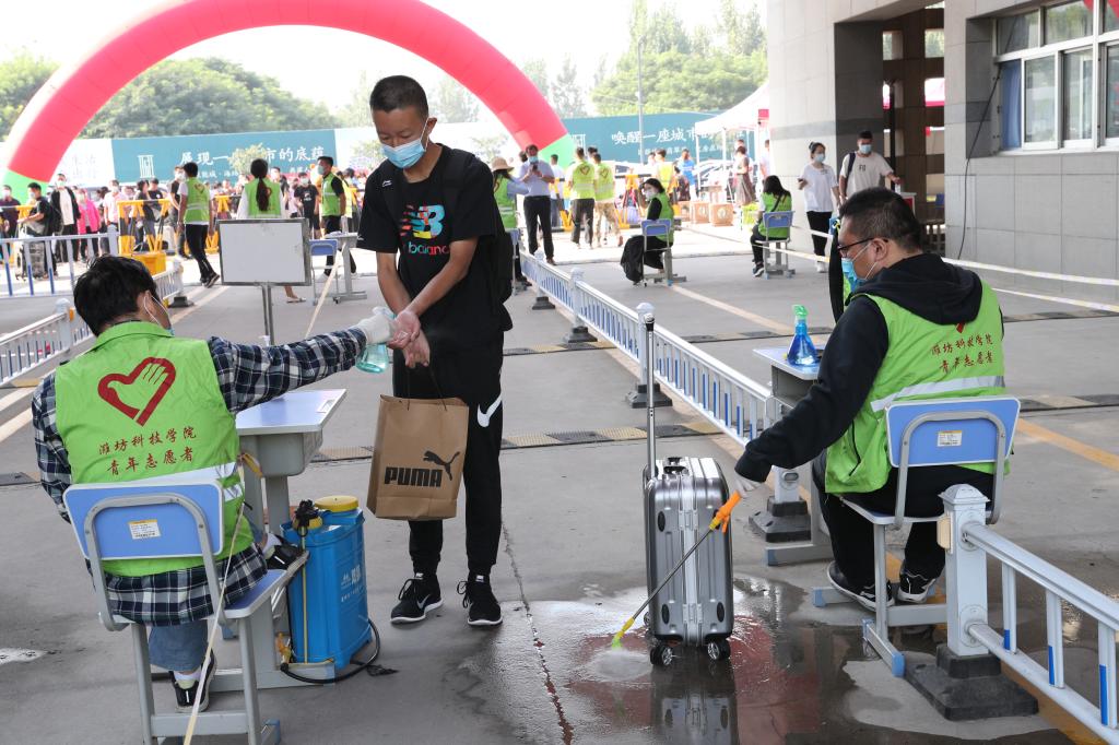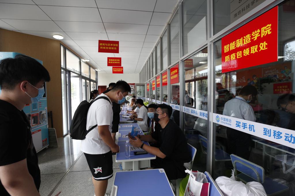 学校在潍坊火车站、潍坊汽车站、寿光汽车站设有新生接站车,自9月5日凌晨3点开始接站。各学院迎新点的老师和学生志愿者也早早就位,准备迎接2020级新生的到来。每个学院都在迎新点立上了专属自己学院的标识牌,并给每位新生准备了爱心防疫包和迎新贺卡。学校为新生们精心拍摄了入学照片,希望这些照片能成为潍科与同学们共同的回忆,待到毕业时再一同回味这些弥足珍贵的青春足迹。