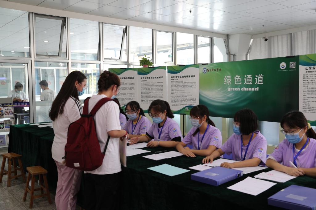 今年我校面向全国15个省、市、自治区招生,截至9月4日,共录取各类新生9796人,其中普通本科、专升本录取4024人,本科录取首次突破4000人。山东省本科招生一榜录满,普通本科录取平均分475分,高出一段线26分。山东专科录取4107人,其中山东定向培养士官录取345人,普通专科录取3762人。3+4、五年一贯制录取1840人,其中3+4贯通本科计划40人,五年一贯制大专计划1800人,报名人数7000余人,生源质量大幅提升。根据疫情防控工作需要,今年我校新生分批入学。9月5日至6日为2020级普通本科、专升本、士官新生共计4210人入学,9月7日为2020级五专转段新生1769人入学,10月10日至11日为普通专科新生4900人入学。