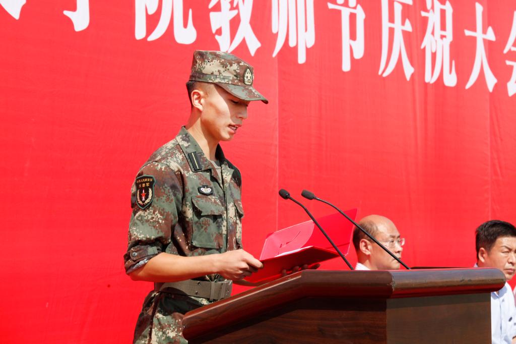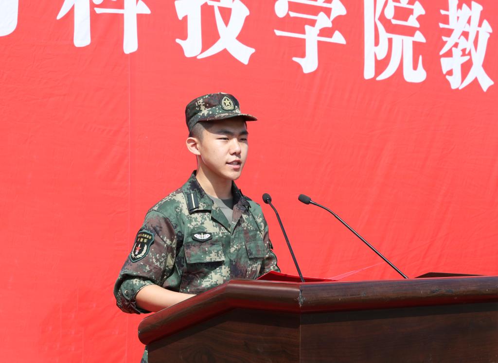 教师代表孙一力博士,新生代表惠志远同学,教官代表耿国浩同志分别发言。
