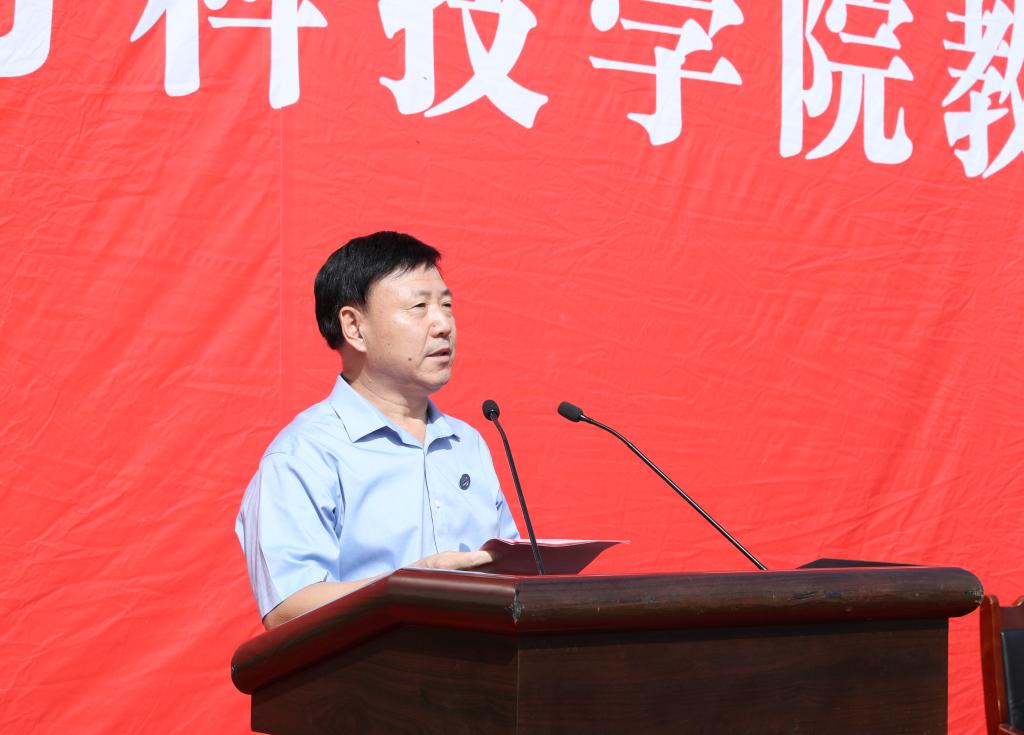 李昌武在致辞中指出,文教昌明,利在千秋,功在教师。一个人遇到好老师是人生的幸运,一个学校拥有好老师是学校的光荣。在潍科36年的发展历程中,从来不乏爱岗敬业、德艺双馨的教师典范。他们之中,有理论深厚的思政课教师程春艳、郭爽老师;有坚持“三全育人”的辅导员黄登翠老师;有热心公益的崔月霞老师;有潜心科研的李法君、丁莹莹老师;有组织、指导学生获得省“挑战杯”、“互联网+”金奖的郑东营、黄宗经、杜鹏、苏琦、唐玉海、张林、马家兴、唐汝桓老师;有近五年获得省级表彰的寇兴亭、李广伟、崔鑫老师;有以张友祥、李强、宋彧、费聿珉、王学伟、王平、臧玉梅、刘杰、王腾、王瑞春、任晓军等为代表的教授、博士们,不惧奔波,服务企业、地方发展;更有一批“起始于辛劳,收归于平淡”,常年坚守在三尺讲台,培养出万千英才的老师们。近年来,涌现出了团十八大正式代表孟金鹏,中华全国学联第二十七届委员会正式代表张满意,全国大学生志愿服务西部计划优秀志愿者杨洪义、孙枫毅,山东省大学生“青春贡献奖”徐靖淋、王鹏程,从专科一路深造到博士的李璐璐、王洪涛等优秀学子。一代代潍科人抓住每一次历史机遇,弘扬“创业敬业,求是求新”的学校精神,短短三十余年,便完成了从中专到大专再到本科的跨越,实现了“千亩校园、万人大学”的梦想。目前,全日制在校生3.1万余人,拥有5个学部、13个二级学院、81个本、专科专业。今年,获得山东省“挑战杯”、“互联网+”大学生创新创业大赛三项金奖,实现历史性突破。2020年全国新建本科院校联席会议将在我校举办,办学影响力持续提升。自2012年第一届本科生毕业以来,考研率连续9年超过30%,列全国同类院校第一名。2017—2019连续三年大众网测评满意度全省同类高校第一。