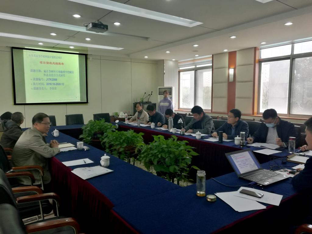 受山东省教育厅委托,4月23日,由潍坊科技学院主持,联合华中农业大学共同承担的山东省高等学校科技发展计划重点项目“氟在茶树叶片细胞壁中的赋存形态及结合方式研究(J18KZ007)”课题验收会在我校召开。验收会专家组由青岛农业大学、山东省林业科学院等7位同领域专家组成。科技处处长杨志勇主持。