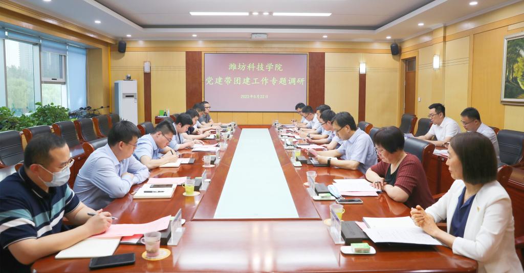 5月22日下午,共青团山东省委组织部部长彭莉、省委组织部组织三处四级调研员公浩伟、团省委组织部二级主任科员屈歌一行来校开展党建带团建工作专题调研。潍坊市团市委书记赵中国、潍坊市团市委副书记周发家、潍坊市人才发展服务中心人才开发科科长韩兆峰、潍坊市团市委组织部部长李宏光、寿光市团市委书记宋立强等领导陪同,我校党委副书记、校长魏华中,党委委员、副校长李广伟,团委、人事处相关负责人,部分二级学院党支部书记及团总支书记参加会议。